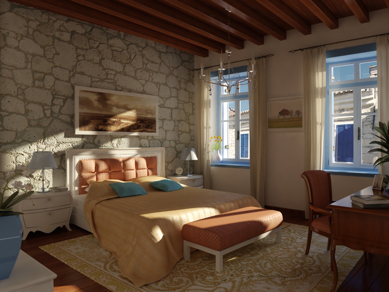 A refined, balanced room with crisp linens, warm accents, and space to unwind after the city.